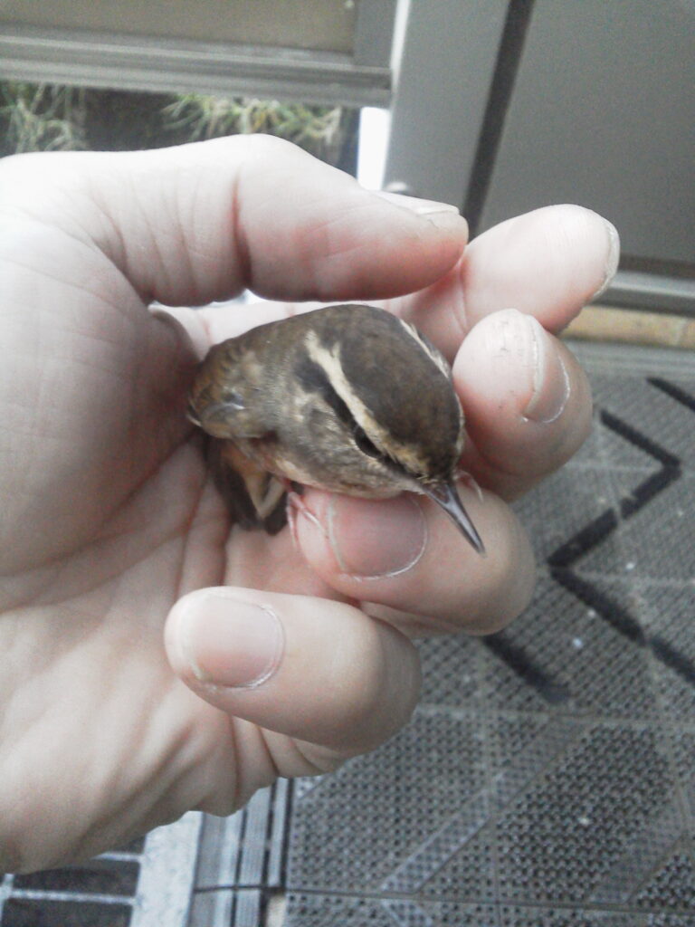 朝の出勤時でだいぶ時間が押してしまい、小鳥も落ち着いた様子だったので急いで仕事に向かいました。30分ほどして様子を見に行ったところ、もう居なかったので無事に飛び立っていったのだろうと思います。急なことで混乱してしまいましたが、やはり人の手より樹の枝のほうが落ち着くのだろうと思いました。今度は森で会いたいものです。・・・と思っていましたがいつもの森のセンサーカメラに同じような小鳥が写っていました。