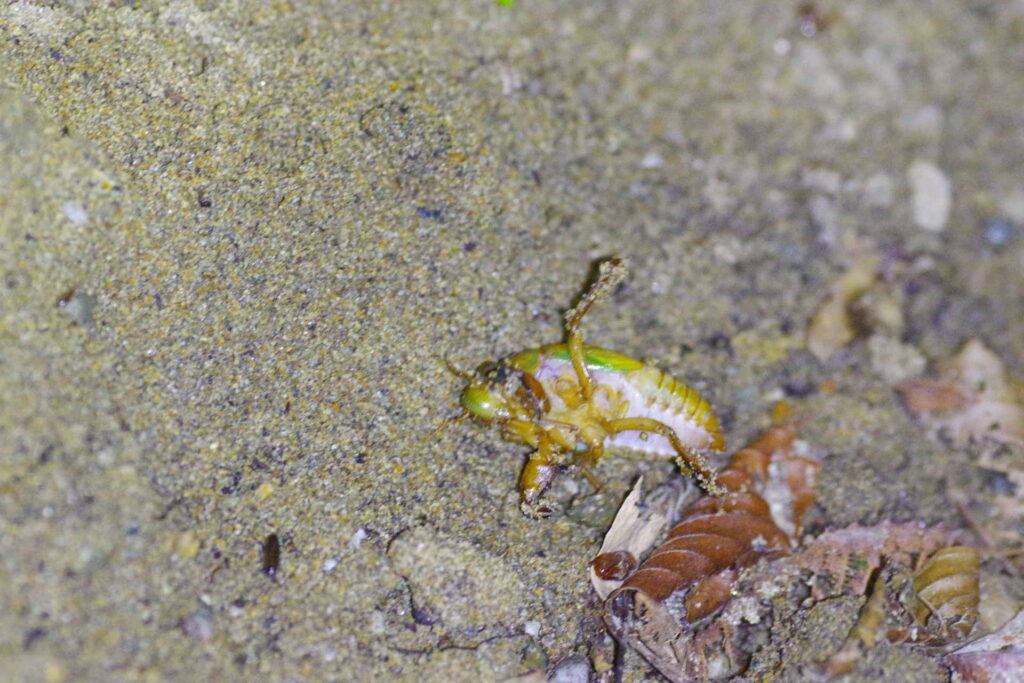 おぉっ、生きているセミの幼虫がっっ!(初めて見たので興奮)その様子を眺めて間もなくセミの幼虫は足を踏み外して転げ落ちました。