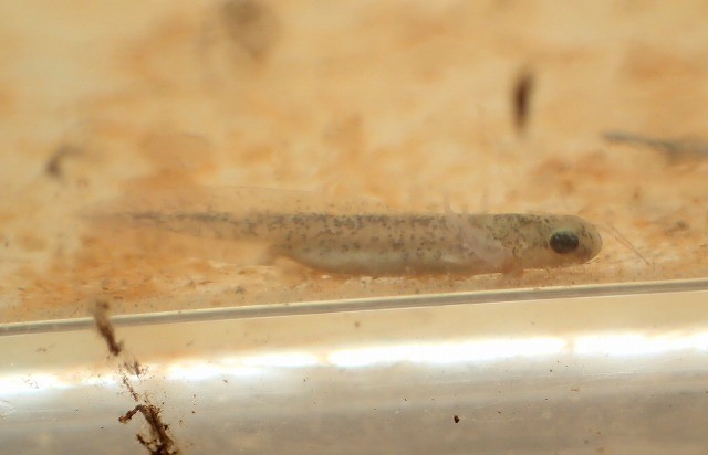 産卵からおよそ4か月。飼育中のセトウチのうち2頭の外鰓が無くなり、変態したことを確認しました。