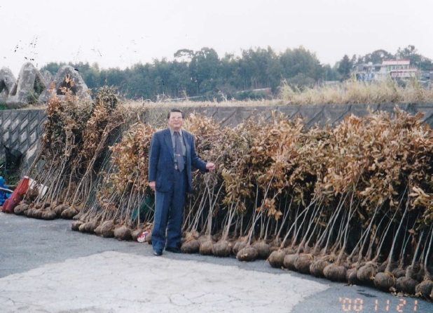 植樹会用樹木の苗325本を確認する筆者