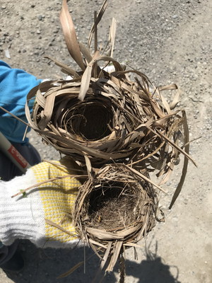 ノイバラを刈り取りました。ウグイスとオオヨシキリの古巣が見つかりました。