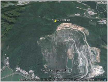 図1. GoogleEarthで見るカヤネズミ調査区