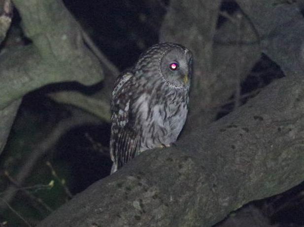 があるとき監視塔からサーチライトで右から左へと照らすようにスーッと動かして見ていると・・・。特に変化はないのですが、ん?と思い左から右にスーッと戻すと・・・。フクロウがこちらを見ていました。