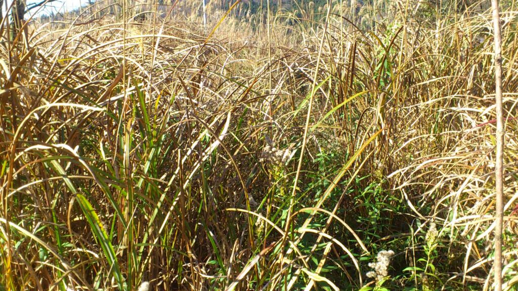 オギとセイタカアワダチソウが半々だったフィールドはヤギの働きでオギが優勢となった
