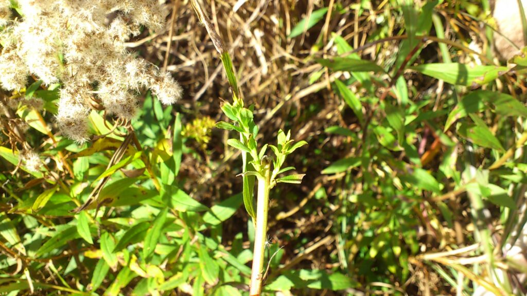 かじられた部分の脇から新しい芽が伸びてくるが成長は遅くなる。成長点を繰り返しヤギにかじられたセイタカアワダチソウは、草丈が低く抑えられる。