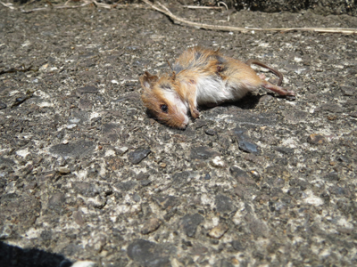カヤネズミ死骸/小泉川金ケ原橋上流左岸階段(2016年7月6日)
