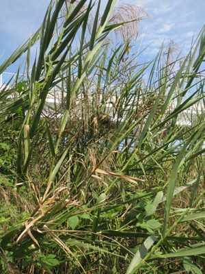 今年6月30日に、中流域にあるオギ群落で巣を9個確認し、日中でしたがオギの葉上を歩くカヤネズミを一匹見つけました。慌ててデジカメで写しましたが体の一部しか写っていませんでした。カヤネズミの目撃は2年前に桂川で畠さんと調査時に出くわしているので、これで二回目でしたが胸わくわくでした。