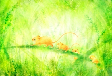| A.カヤネットロゴマーク | B.カヤネズミのこども | C.カヤネズミのおやこ |