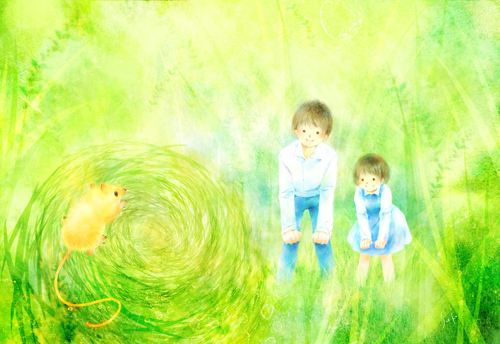 | E. 草原の小さな住人 カヤネズミ企画展&シンポジウムポスターイラスト | F. 草地のいきもの 第2回全国カヤ・サミットポスターイラスト) |