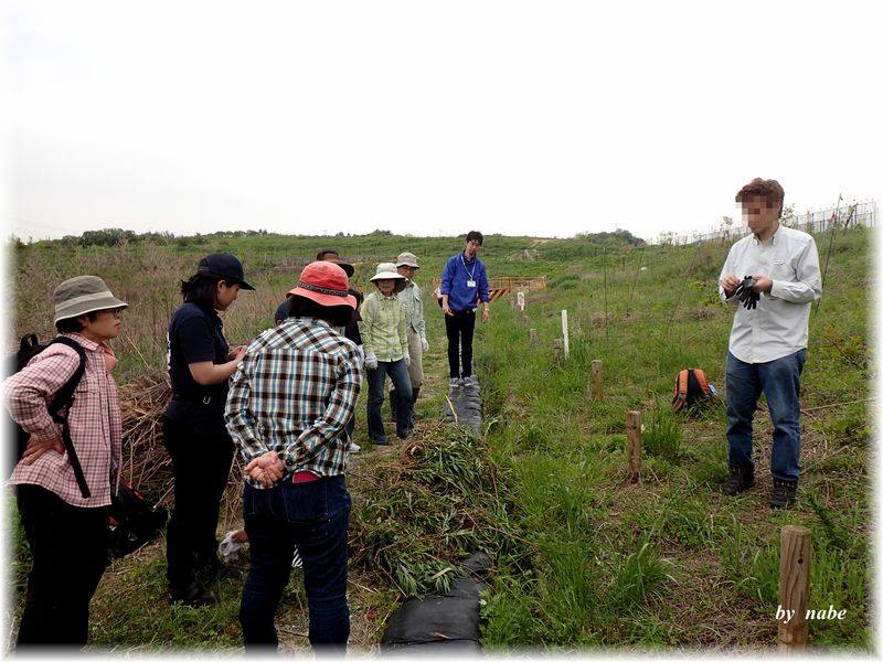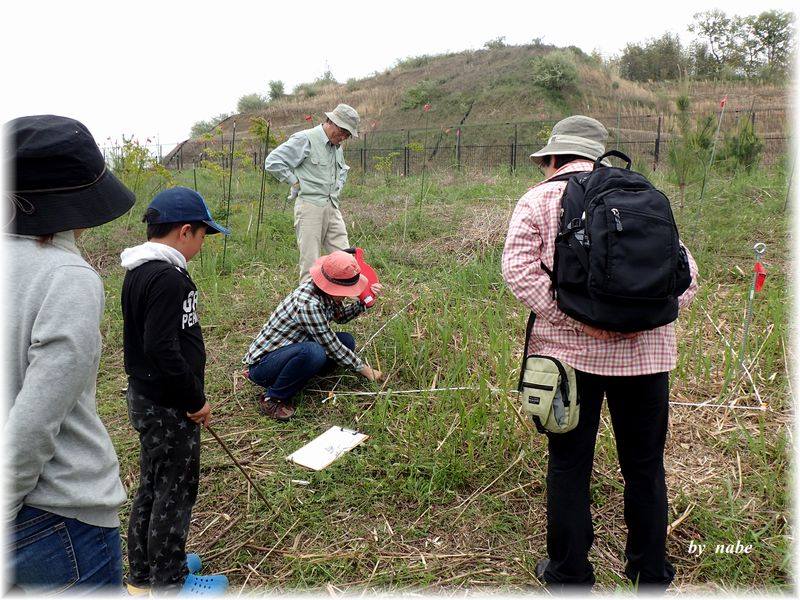 まず、本会代表の畠さんから開催説明があり、現場へ移動。参加者全員で、オギの芽だしを避けて、主にセイタカアワダチソウを抜きました。その後、4つのコドラートを設置し、植生調査。初めて調査をする子ども達もいて、楽しく行なわれました。現地では、昨年の落下巣も何個も見つかり、今後が楽しみです。カヤネットからは、石川・岡山と遠くから会員の方が駆けつけ、話題に事欠きませんでした。