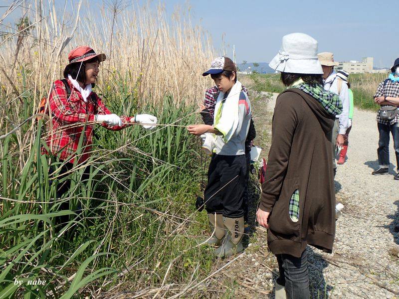 オギの特徴は…オギとヨシの違いは…へえ~の声が聞こえます!小さな参加者は見つける物も鋭い!