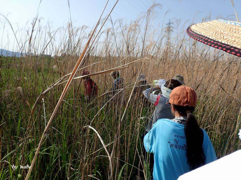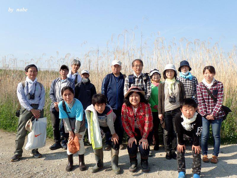 オギが伸び始めたフィールドに、15名の茅人(かやんちゅ)が集合。遠くは、埼玉からも参加がありました。好天のもと、春のカヤ原を満喫しました。