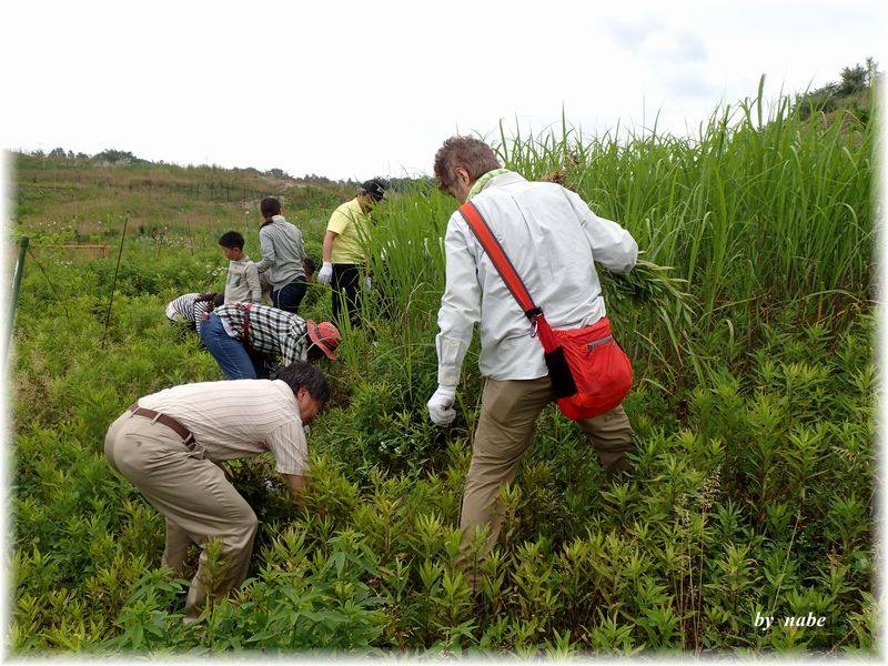 お天気がちょっと心配されましたが、前回を上回る12名の参加があり、伸び始めたオギ原に群生するセイタカアワダチソウの駆除に汗を流しました。観察地以外でですが、球巣も見つかりました。9月に行われる第3弾のカヤネズミ観察会が楽しみです!