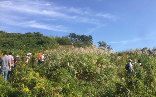 10月15日(土)京都府城陽市の五里五里の丘で、カヤ原を学ぼう!第4弾「オギ原の生きもの探検~ごりごりの丘のカヤ原でカヤネズミの巣を見つけよう!~」が開催されました。今回は、定員を超える50名の参加がありました。残念ながらカヤネズミには出会えませんでしたが、新しい巣も見つかり、秋晴れの中、楽しくにぎやかな観察会になりました。