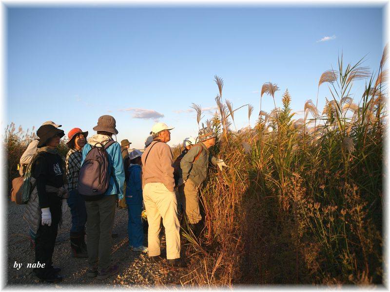 10月31日(土)京都の桂川にて、茅人への道~カヤ原フィールドツアー2「夕暮れにオギを愛でる♥チュウ秋特別ツアー」が開催されました(主催:リバーフィールド、共催:全国カヤネズミ・ネットワーク)。参加者は、予定数を超える19名の参加があり、大盛況でした。秋晴れの絶好のフィールド日和となり、オギの穂が白く輝く桂川の河原で、カヤネズミの巣作りにチャレンジしました。